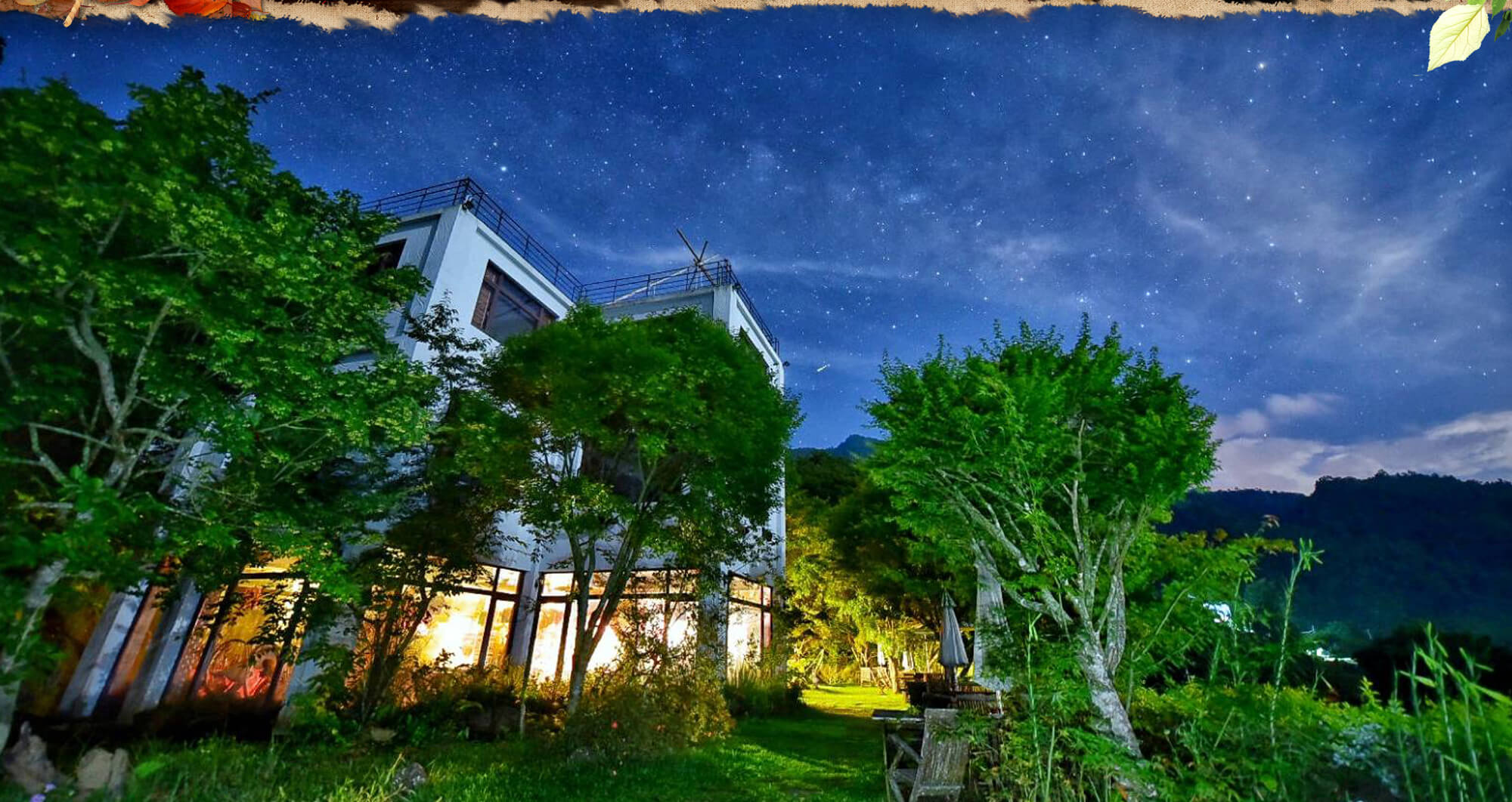 苗栗大湖楓葉地圖民宿位於苗栗「海拔752公尺馬那邦山」半山腰754公尺登山入口處,是一棟充滿詩情畫意的浪漫民宿,民宿四周青山連綿,隨著季節的變化交替,時而嵐霧、雲海,每每楓紅,靜謐的山林氛圍,更悄悄地攫獲心靈。